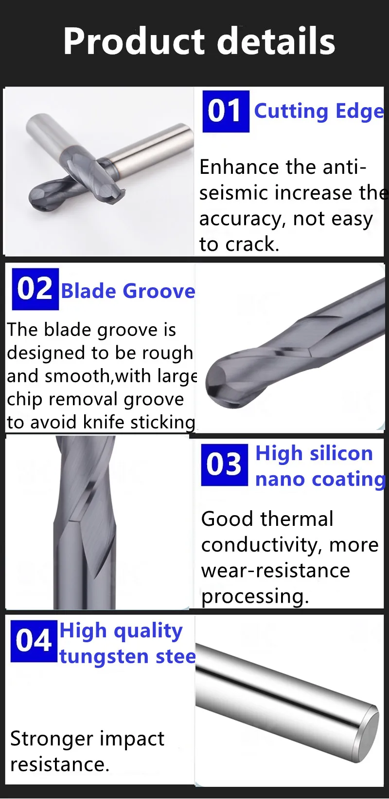 Примечание: фреза не рекомендуется обрабатывать неметаллические материалы, такие как медь, алюминий, пластик и т. Д. Рекомендуется использовать в шахтерском центре, прецизионной гравировальной машине и другом оборудовании.