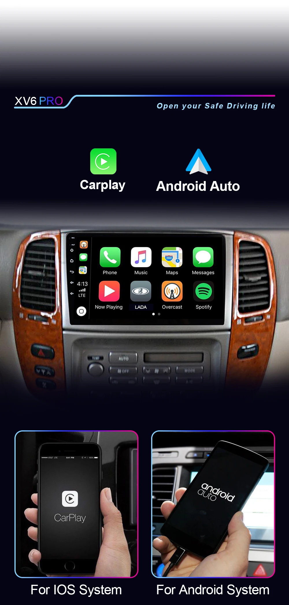 XIMA XV6 Pro встроенный CarPlay + Android Auto поставляется с функцией carplay, не нужно приобретать дополнительные аксессуары.