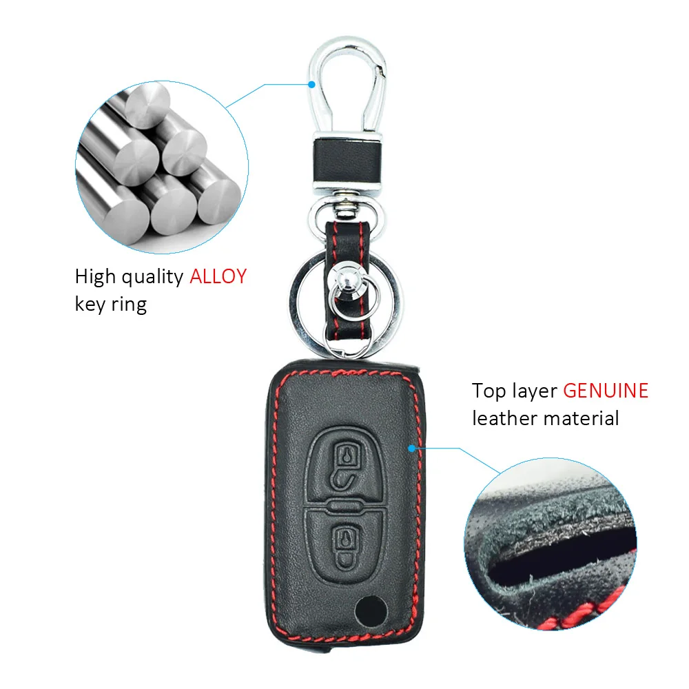 Кожаные чехлы для ключей для Peugeot 308 3008 5008 307 207 4007 RCZ 408 Citroen C3 2 кнопки складной протектор для пульта дистанционного управления автомобильные аксессуары