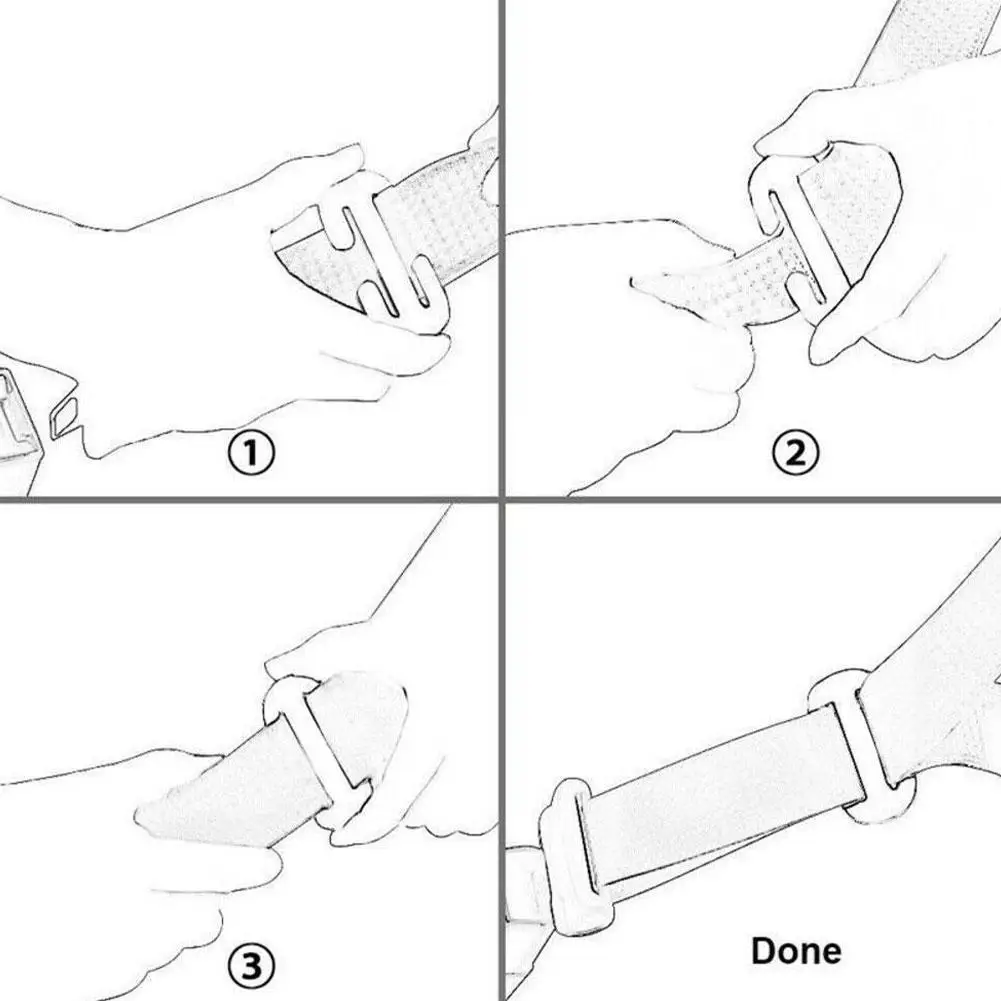 После того, как защелкивается, направляйте ремни как на плече, так и на коленях через запирающие зажимные отверстия и направляйте поперек, чтобы отрегулировать плечевой ремень в более удобное положение. Зажим должен оставаться на месте, когда он установлен правильно.