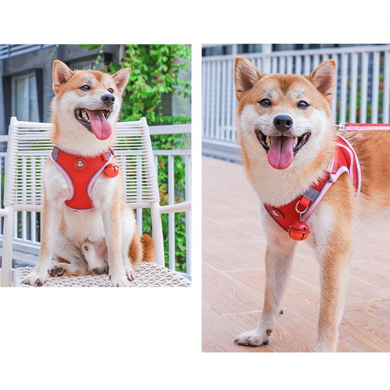 Adjustable Nylon Breathable Pet Dog Reflective Harness Vest With Lead Leash Set For Outdoor Walking Dog Chest Strap Kitten