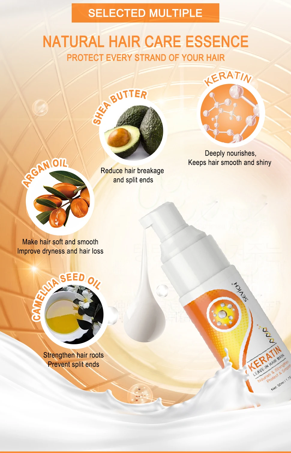 Концентрируйте различные питательные и восстанавливающие эссенции, чтобы добавить влагу и питание к волосам, эффективно восстанавливая поврежденные волосы, питайте волосы и Повышайте эластичность.