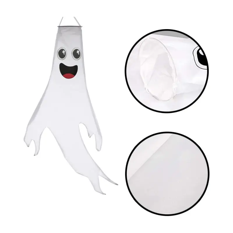 3. Материал-ручная работа. Эти windsocks с привидениями на Хэллоуин изготовлены из нейлоновой ткани, открытой обручем сверху и сшитой по всему миру.
