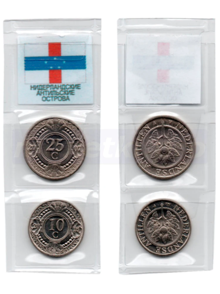 Вы получите комплект из 2-х монет Нидерландских Антильских островов номиналом 10, 25 центов случайного года выпуска.
