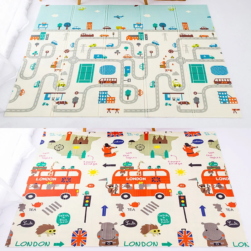 Коврик, который легко складывается, можно компактно упаковать в сумку для переноски, не занимая много места для хранения. Двусторонний дизайн с разными цветами и узорами удивит вас и принесет ребенку больше ощущения свежести, чтобы пробудить его любопытство.