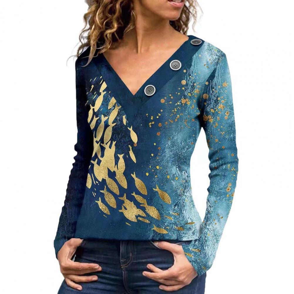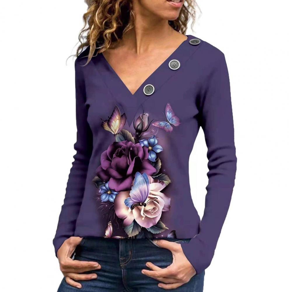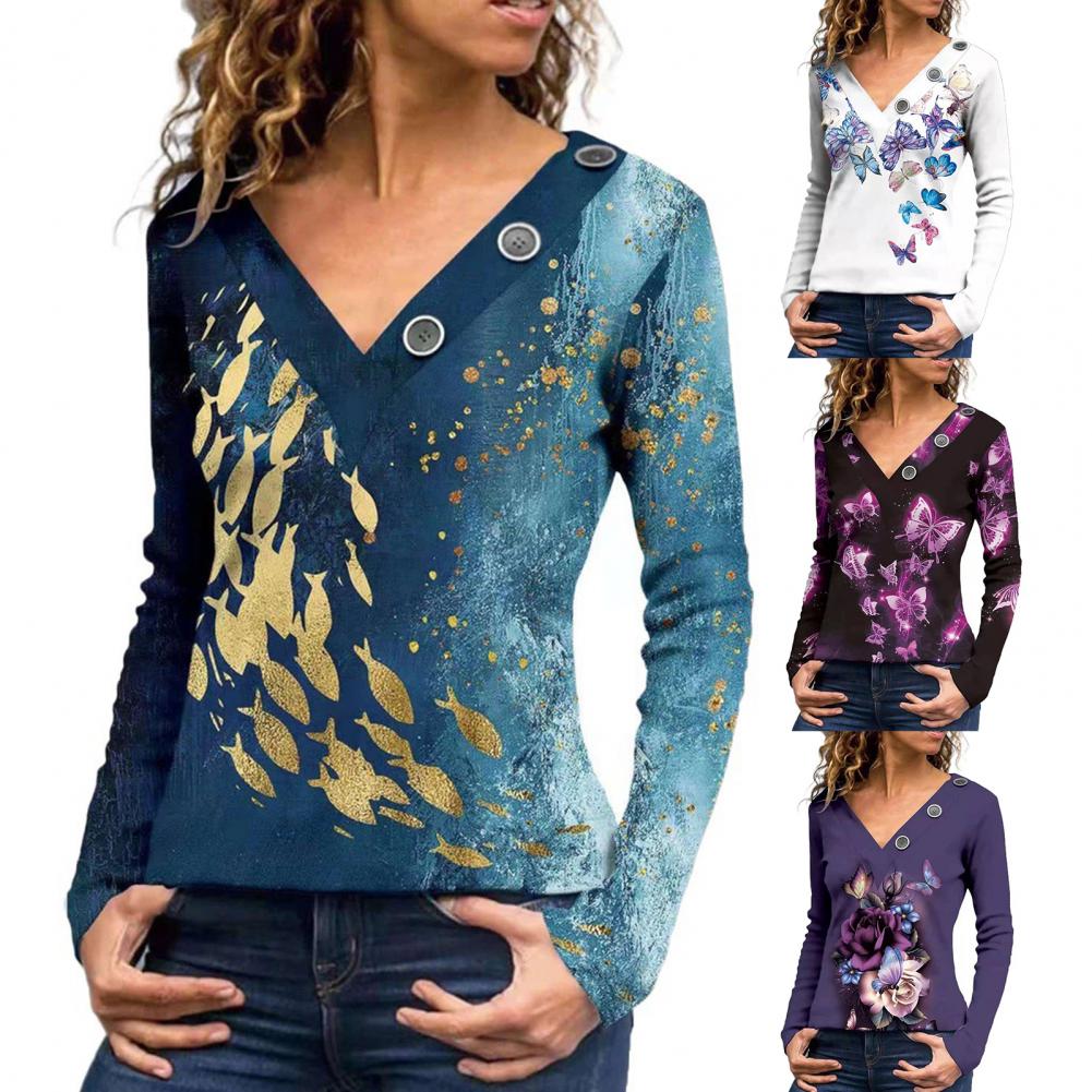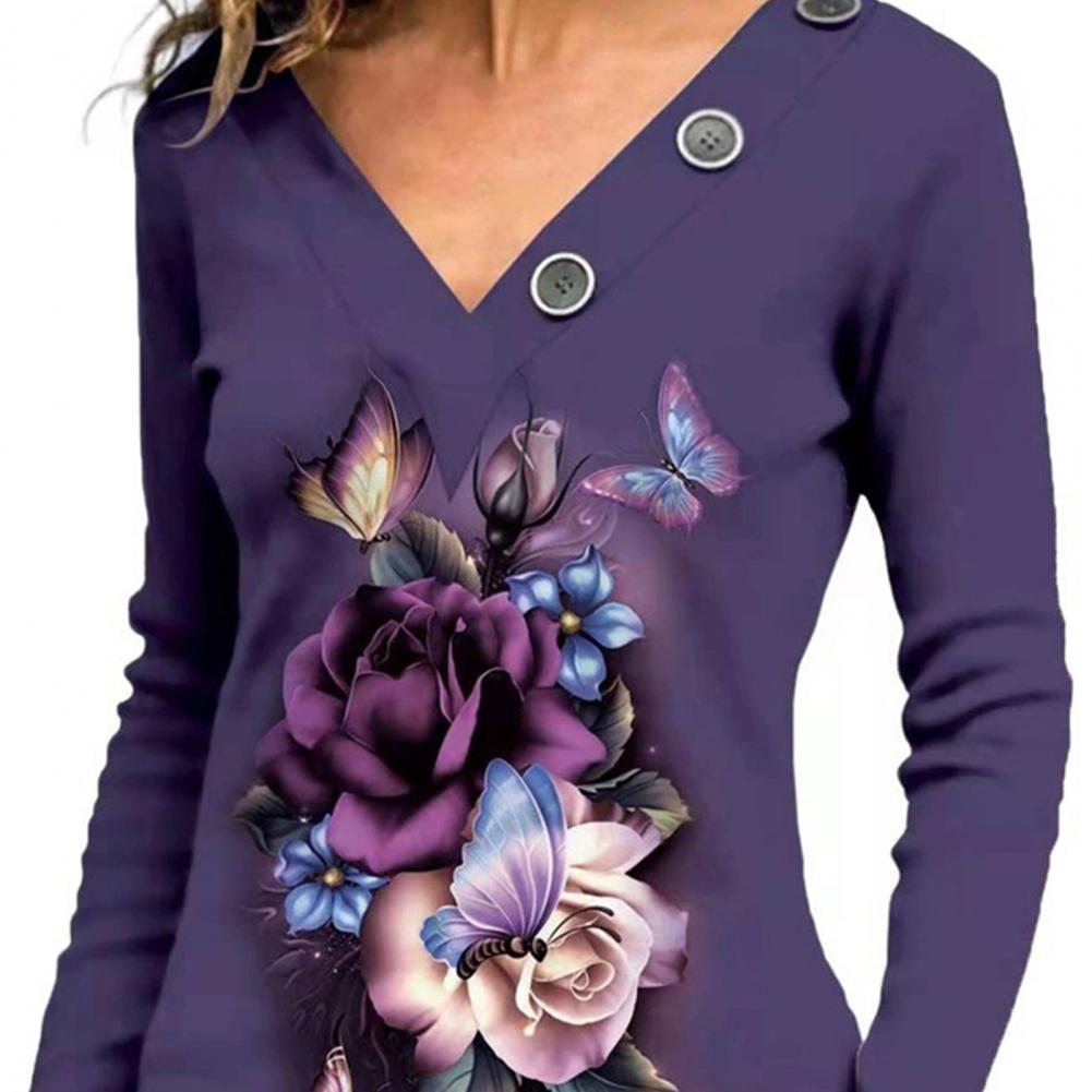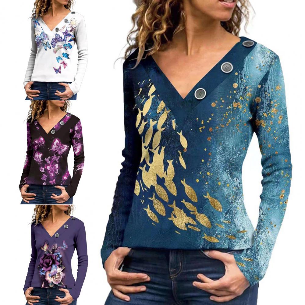 Классическая женская блузка с длинным рукавом, дышащая Осенняя туника с принтом бабочек и v-образным вырезом, верхняя уличная одежда
