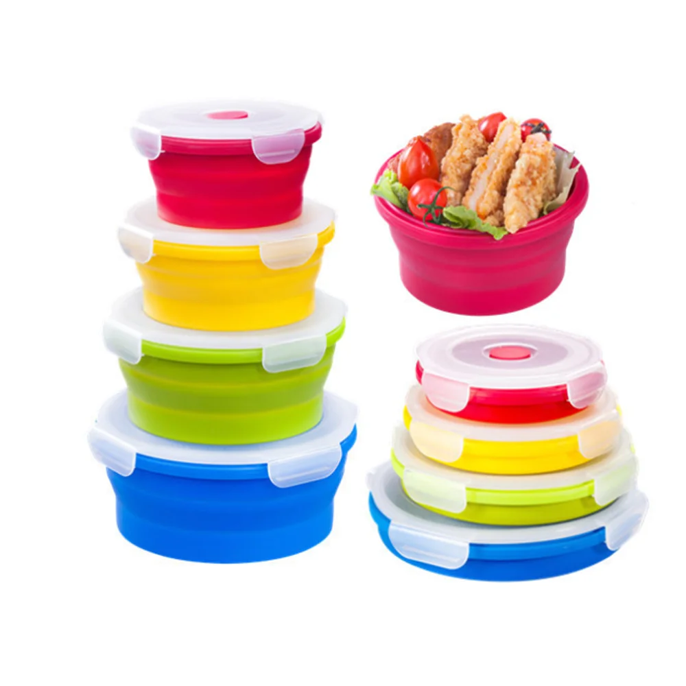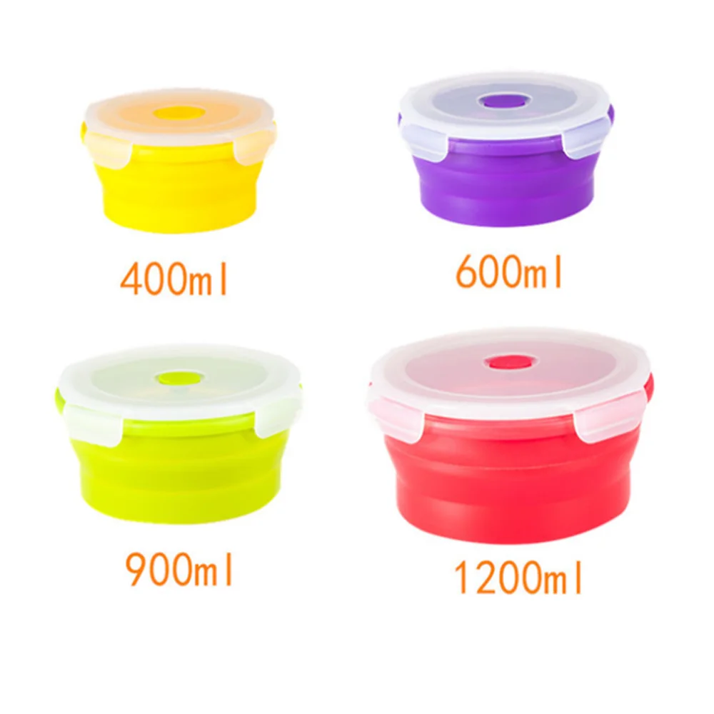 4 размера Силиконовый круглый складной Ланч-бокс складной салатник портативный контейнер для еды и закусок с крышкой набор посуды