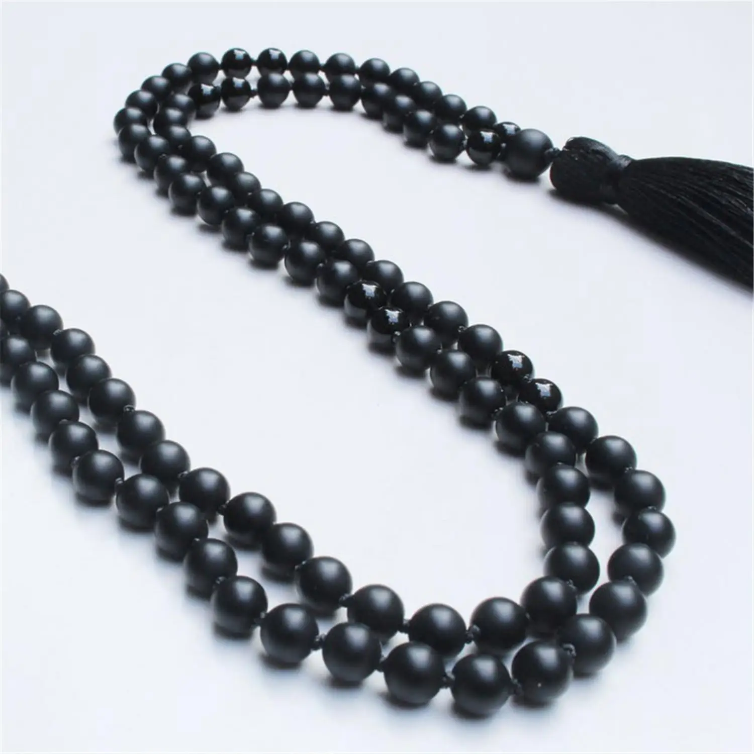 8mm Black Onyx Gemstone 108 Beads Handmade Tassel Necklace Meditation Japa Religious Spirituality Wristband Buddhism Retro