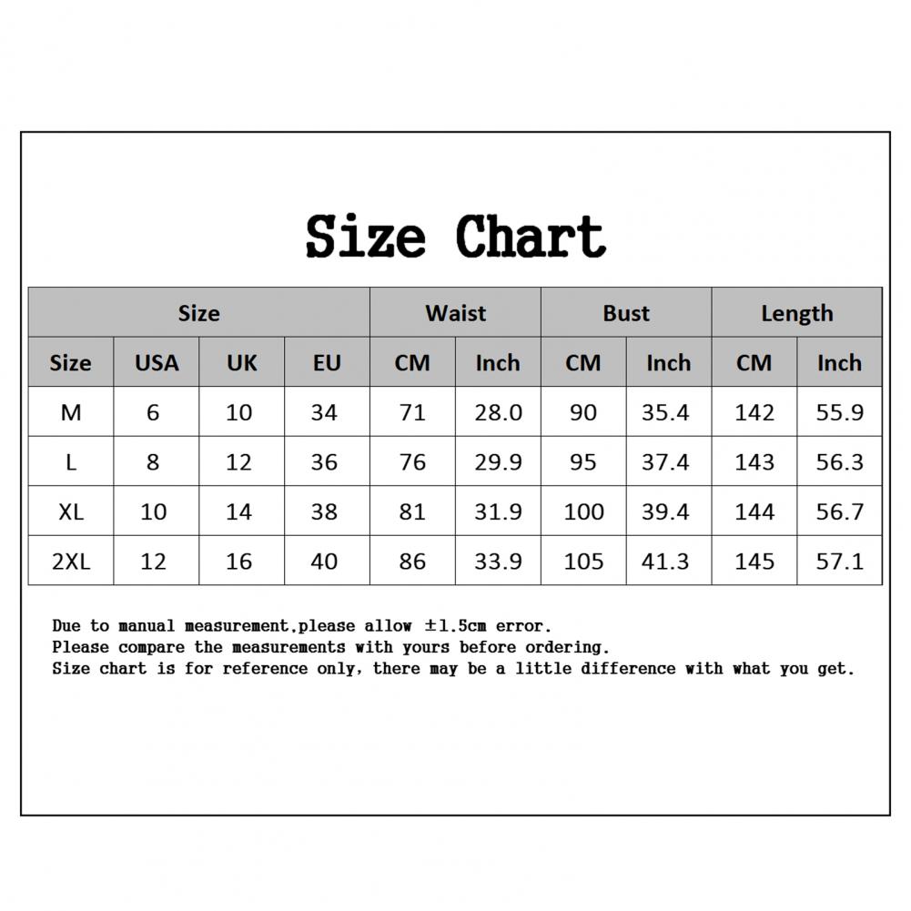 [Наш Размер M] Обхват груди: 90 см/35,4 ", обхват талии: 71 см/28", Длина: 142 см/55,9 "(прибл.)