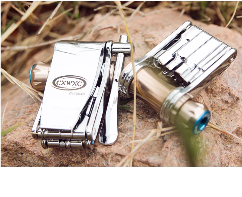 * Бренд: CXWXC* Цвет: серебристый* Модель: CX-T04CO2* Вес: прибл. 132 г* Размер: прибл. 58x50.5x20.5мм* Материал: хром-ванадиевая сталь*[11 в 1 инструмент для ремонта велосипеда]Подходит для: ① 2,5 мм шестигранный бит ② 3 мм шестигранный бит ③ 6 мм шестигранный бит ④ отделение для удостоверения личности-4 мм шестигранный бит (интеграционная схема) ⑤ 8 мм шестигранный бит ⑥ 5 мм шестигранный бит ⑦ PH2 ⑧ e5 отвертка ⑨ 2 мм Аллен бит ⑩ T25 ⑪Cartridge Надувное** Изысканный и компактный, легко носить с собой и использовать** Schrader & Presta патрон адаптера клапана (Картридж в комплект не входит!)Витрина