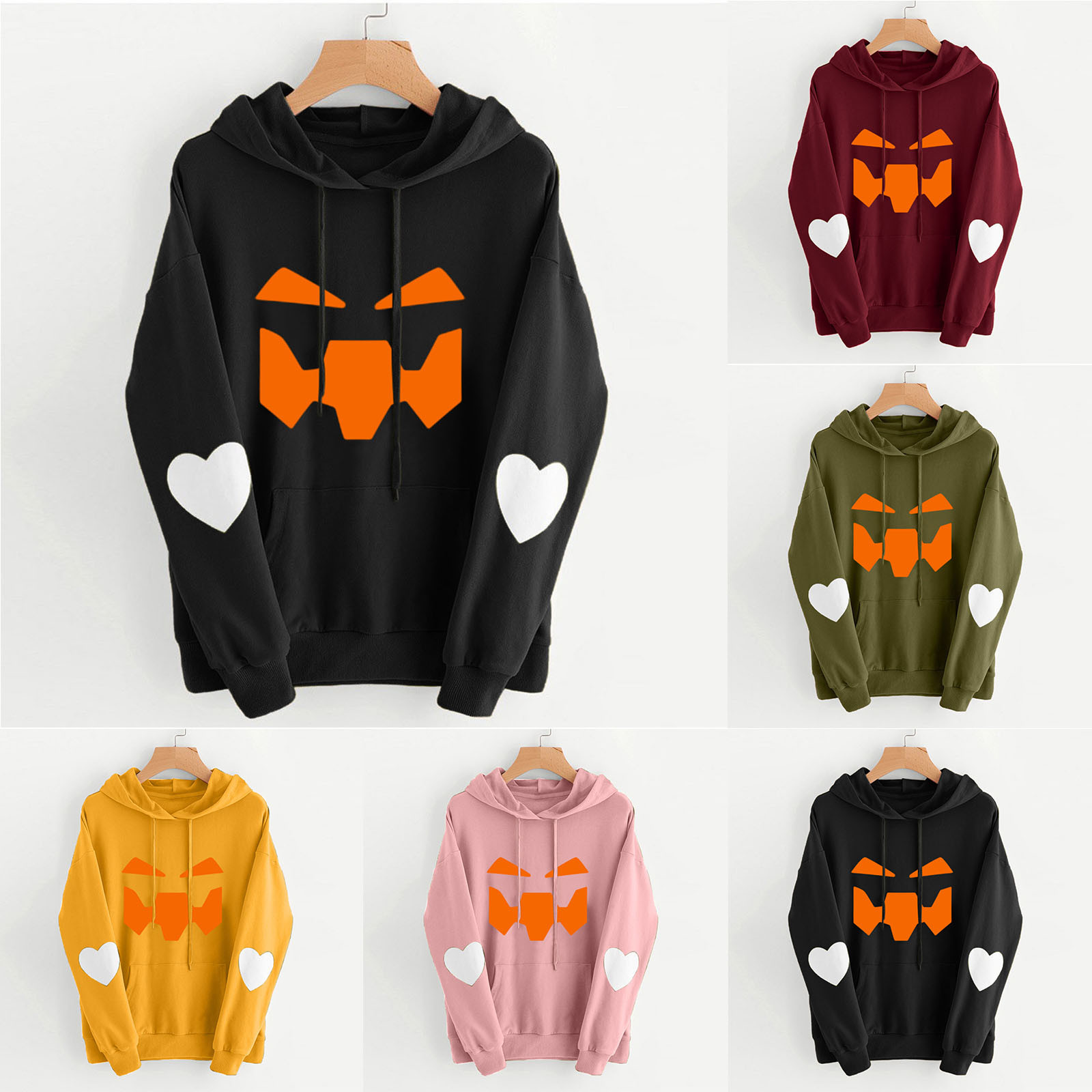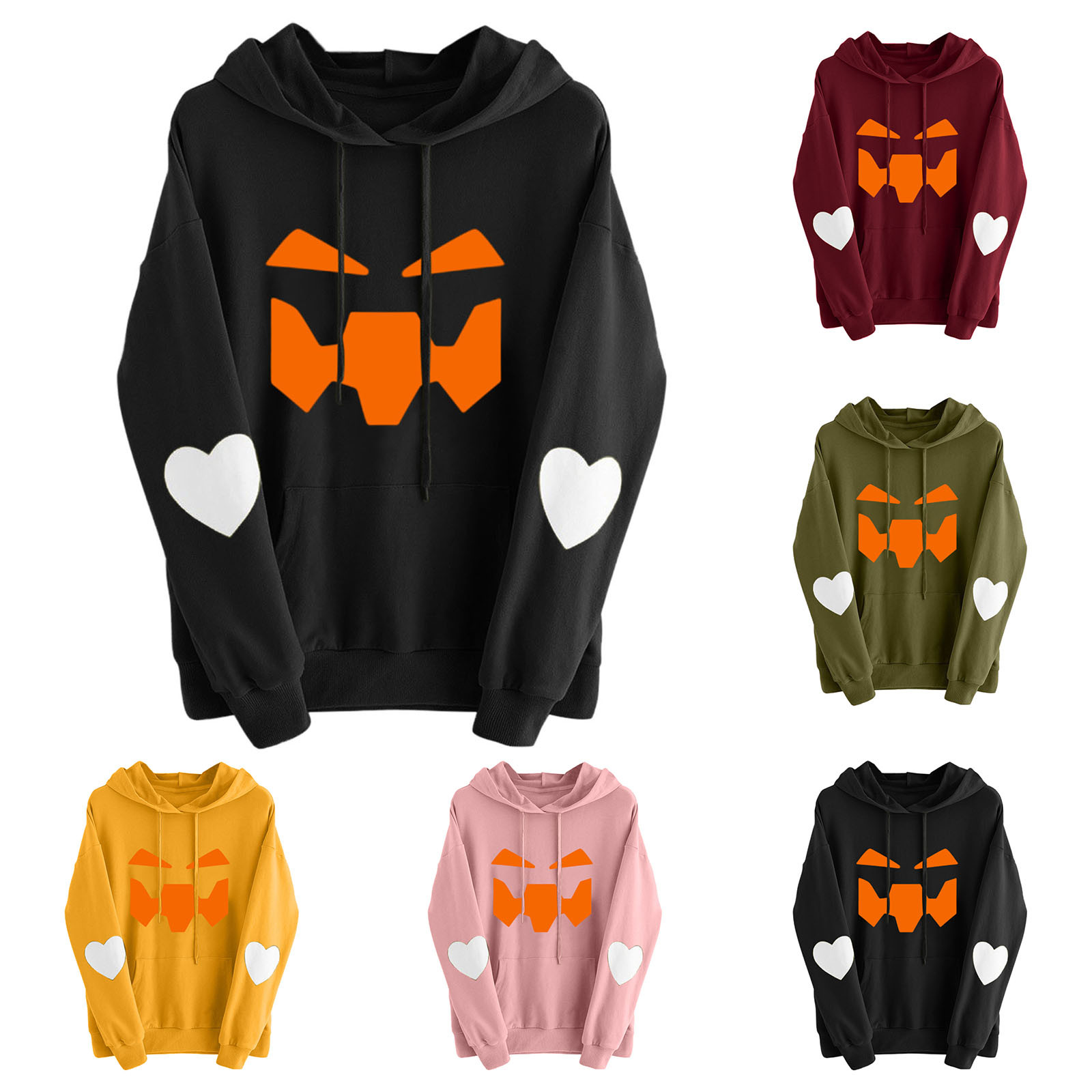 Женские зимние толстовки с капюшоном с принтом тыквы на Хэллоуин, с карманом на шнурке, с длинным рукавом, толстовки с капюшоном, топы Moletom Feminino, Толстовк