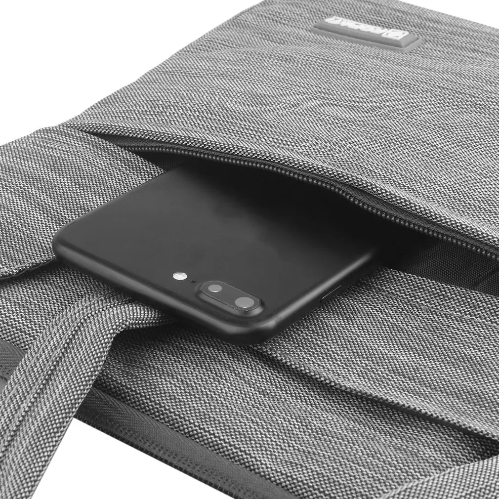 Top handles of the case enable you to carry your laptop in comfort, and can tuck away in the pockets when not needed.