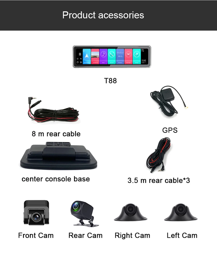 Его кабель задней камеры составляет 8 метров в длину, не беспокойтесь, что кабель слишком короткий для вашего автомобиля SUV.