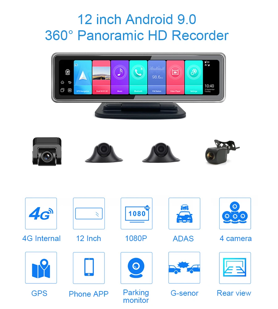 4CHS Зеркало DVR Dash камера с Android 9,0 операционными системами, также доступны с GPS, WiFi и 4G. Идеально подходит для управления парком транспортных средств с GPS приложением и программным обеспечением центрального мониторинга, изготовленным для транспортных средств, грузовиков, автобусов, школьных автобусов.