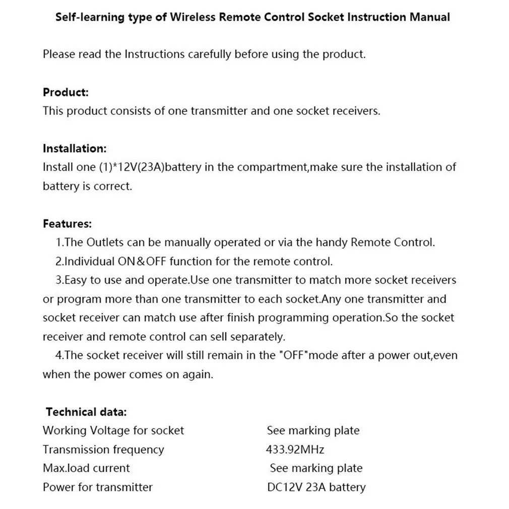 1. Хорошая производительность: продукт подходит для различных бытовых приборов и управления Домашний Светильник. Он может дистанционно управлять нагрузкой в пределах эффективного диапазона и может работать и управлять каждой нагрузкой по желанию.