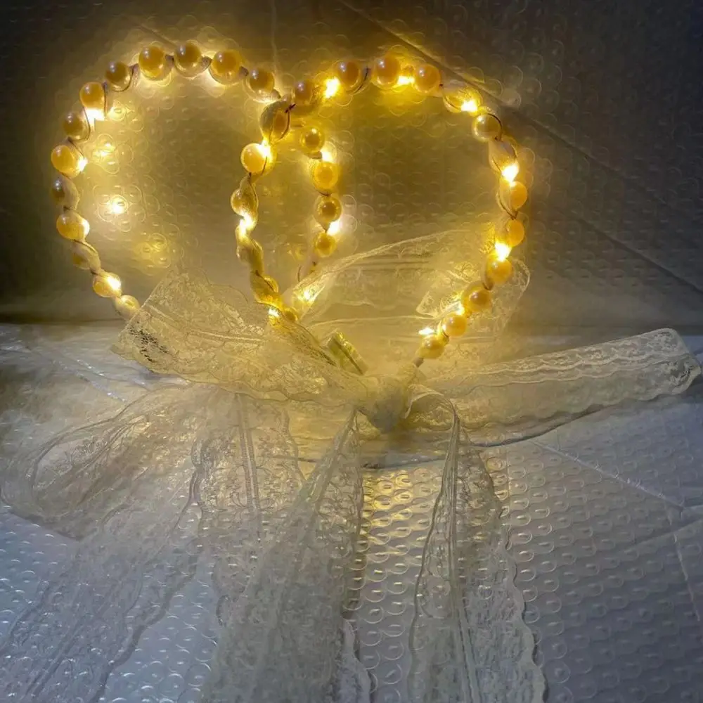Кружевная повязка на голову, светящаяся Жемчужная Повязка, светодиодная лента для волос на день рождения, свадьбу, аксессуары для волос, повязка на голову, подарок