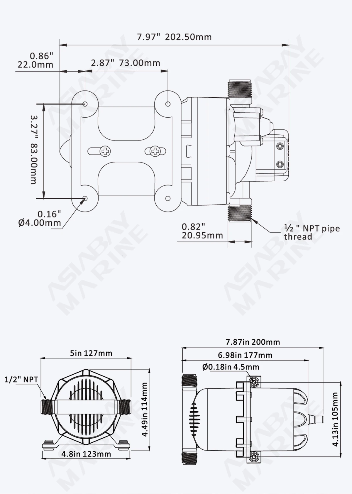 Впускные/Выпускные порты: 1/2 "-14 MNPT