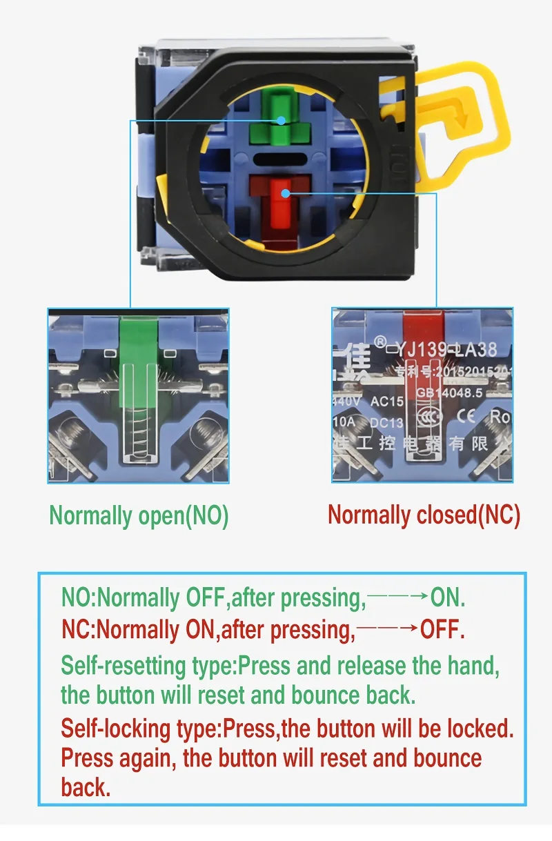 30 мм крепление 4040 мм Грибная головка самоблокирующийся кнопочный переключатель 1NO 1NC LA38A-11M/40