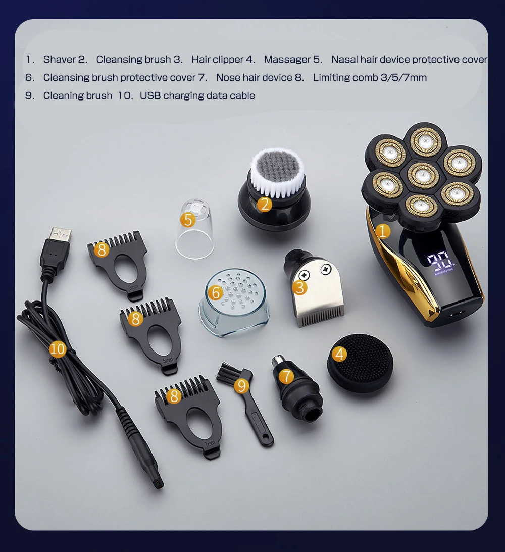 5 в 1 Набор для ухода за лицом электробритва электрическая бритва для мужчин влажные сухие волосы борода лысая голова бритвенный станок перезаряжаемый