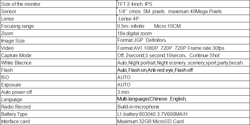 1/4 ”cmos5M пикселей максимум 40Mega пикселей