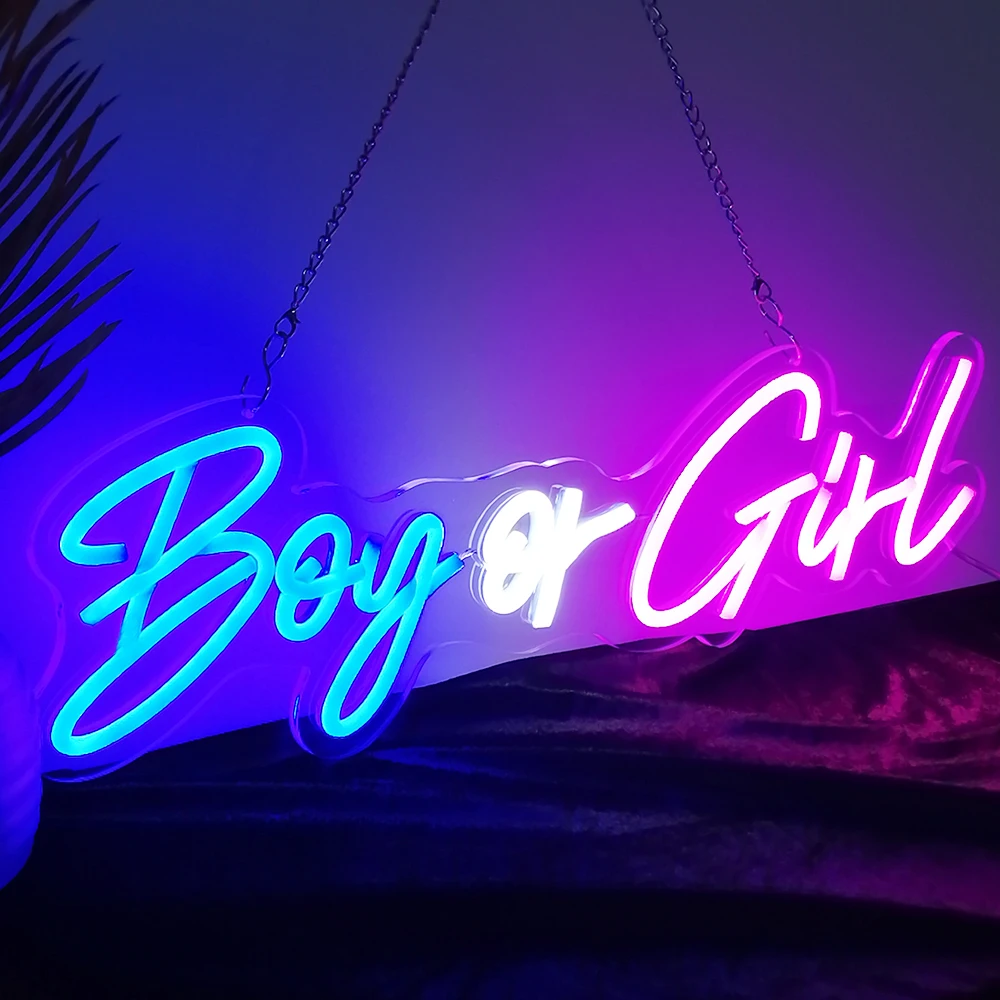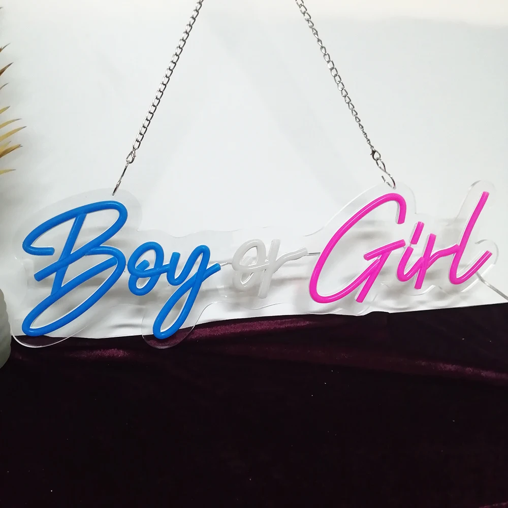 【Plastic Base】 Размеры: «мальчик или девочка "56(L)x20(H)x2.5 (Ш) см, 7,5 мм прозрачной акриловой основой, 6x8 мм Гибкий неоновый acr линии.