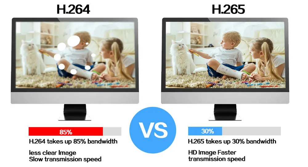 H.265 более четкий, HD разрешение предлагает вам лучшее качество изображения в более низкой скорости. Экономьте больше места для хранения, вы можете уменьшить размер файлов 40%-50%, сэкономить место для хранения HDD и снизить стоимость покупки.