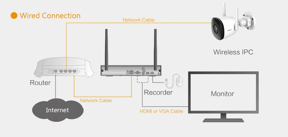 Если вам нужна ip-камера, установленная вдали от NVR, сигналы сильно мешают, вы можете использовать сетевой кабель подключения всех ip-камер к NVR.