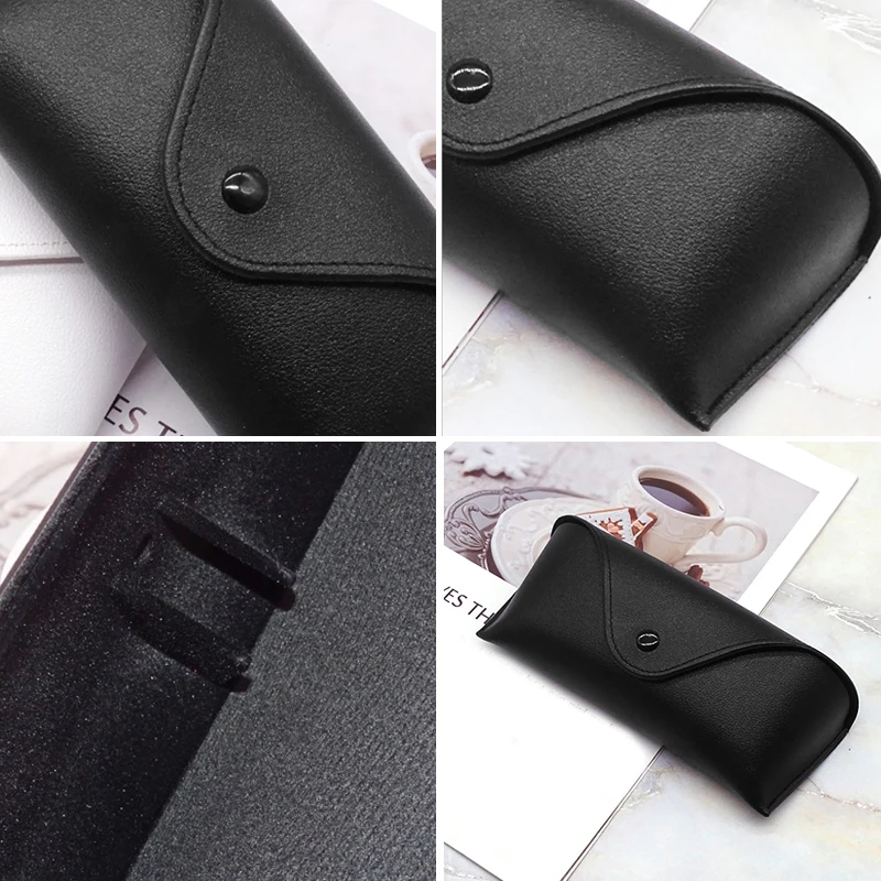 Кожаный Чехол для очков, удобная текстура, уникальный дизайн. Прозрачная текстура, скрытая пуговица, безопасная и прочная. Большое пространство, внутри замша, зеркальная опора, простота в использовании.