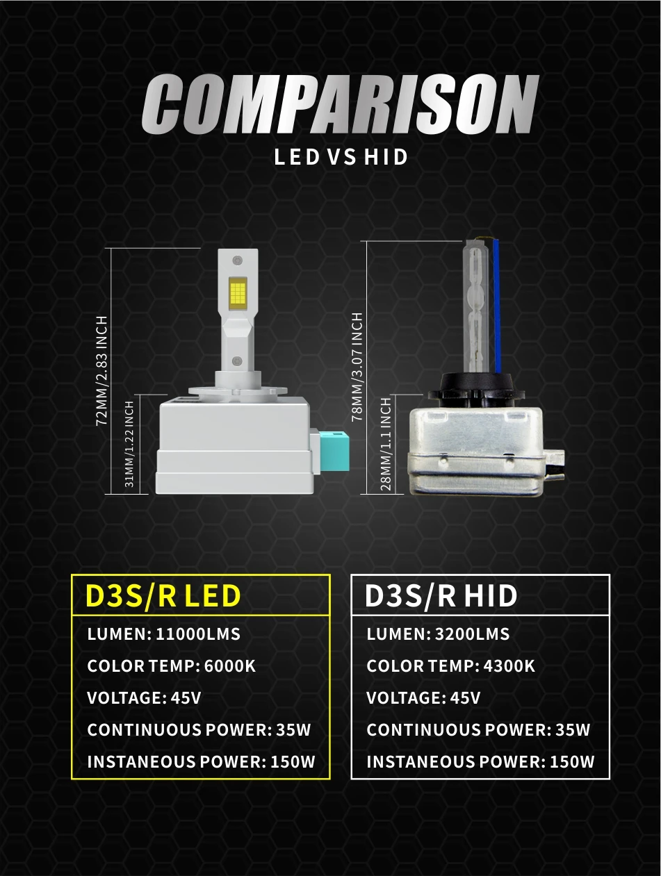 2. D3S HID to светодиодный kit может применяться только для замены D3S HID и никогда не применяться для замены D1S или других HID, это приведет к сгоранию балласта HID