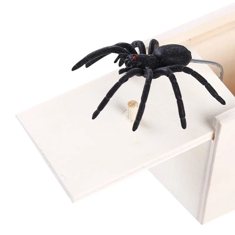 Этот продукт представляет собой деревянную коробку с резиновым пауком. Откройте коробку и выпрыгивает резиновый паук