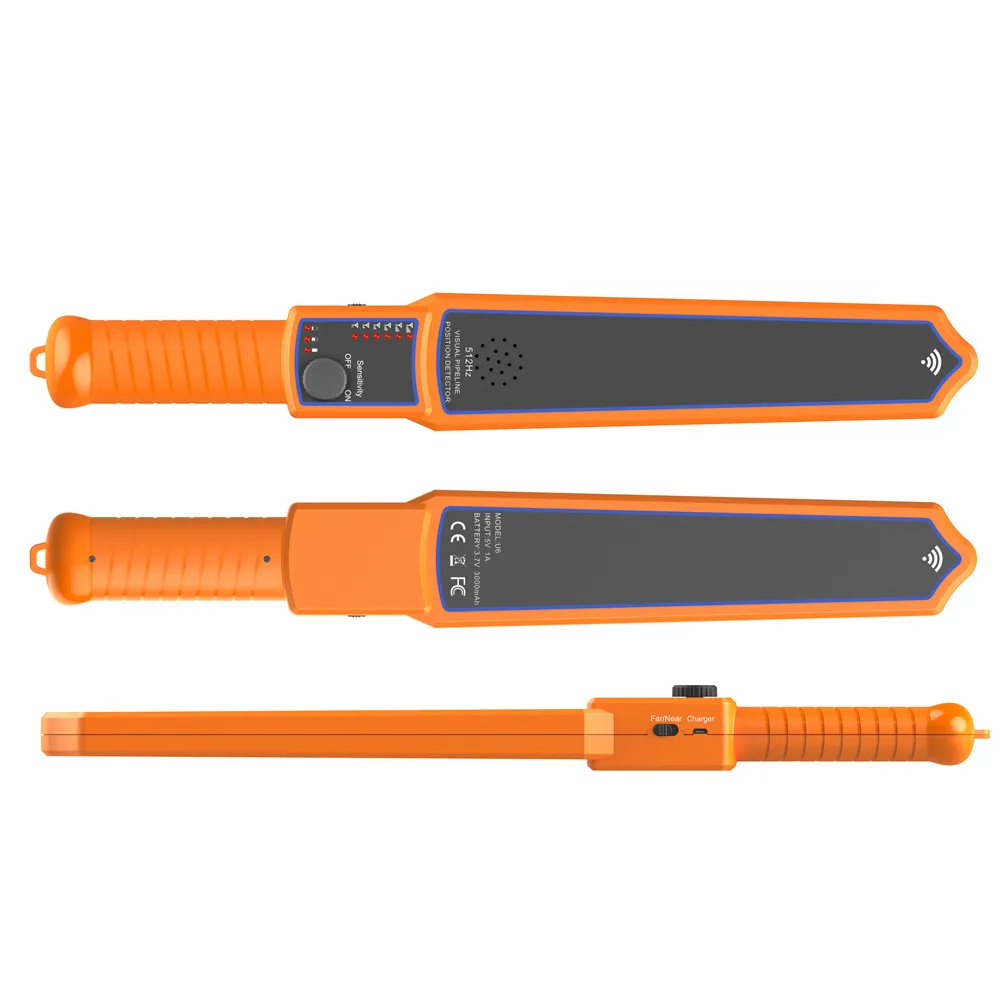Приемник: Приемник имеет встроенную индукционную катушку для получения магнитного сигнала от трубопровода, а катушка генерирует индукционный ток для расчета направления и положения передатчика. Есть два режима приема: Дальний (Примечание: около 5 м) и Ближний (Примечание: около 1 метра). Затем Отрегулируйте