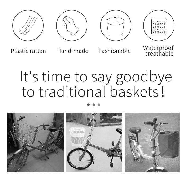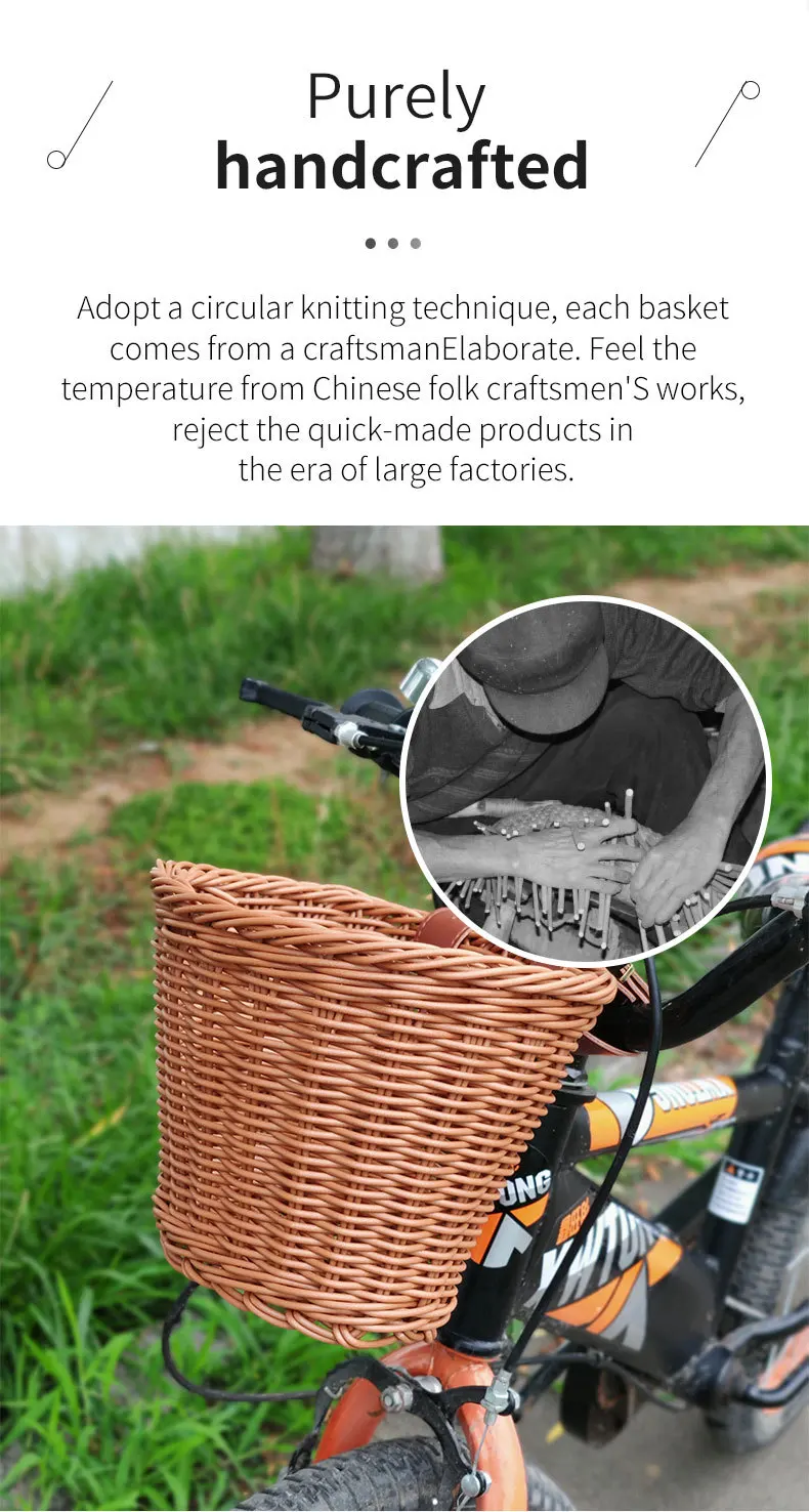 Регулируемый дизайн ремня-плетеная велосипедная корзина поставляется с водонепроницаемым и регулируемым ремнем, который подходит для переднего руля велосипеда, поэтому это идея для видов велосипедов.