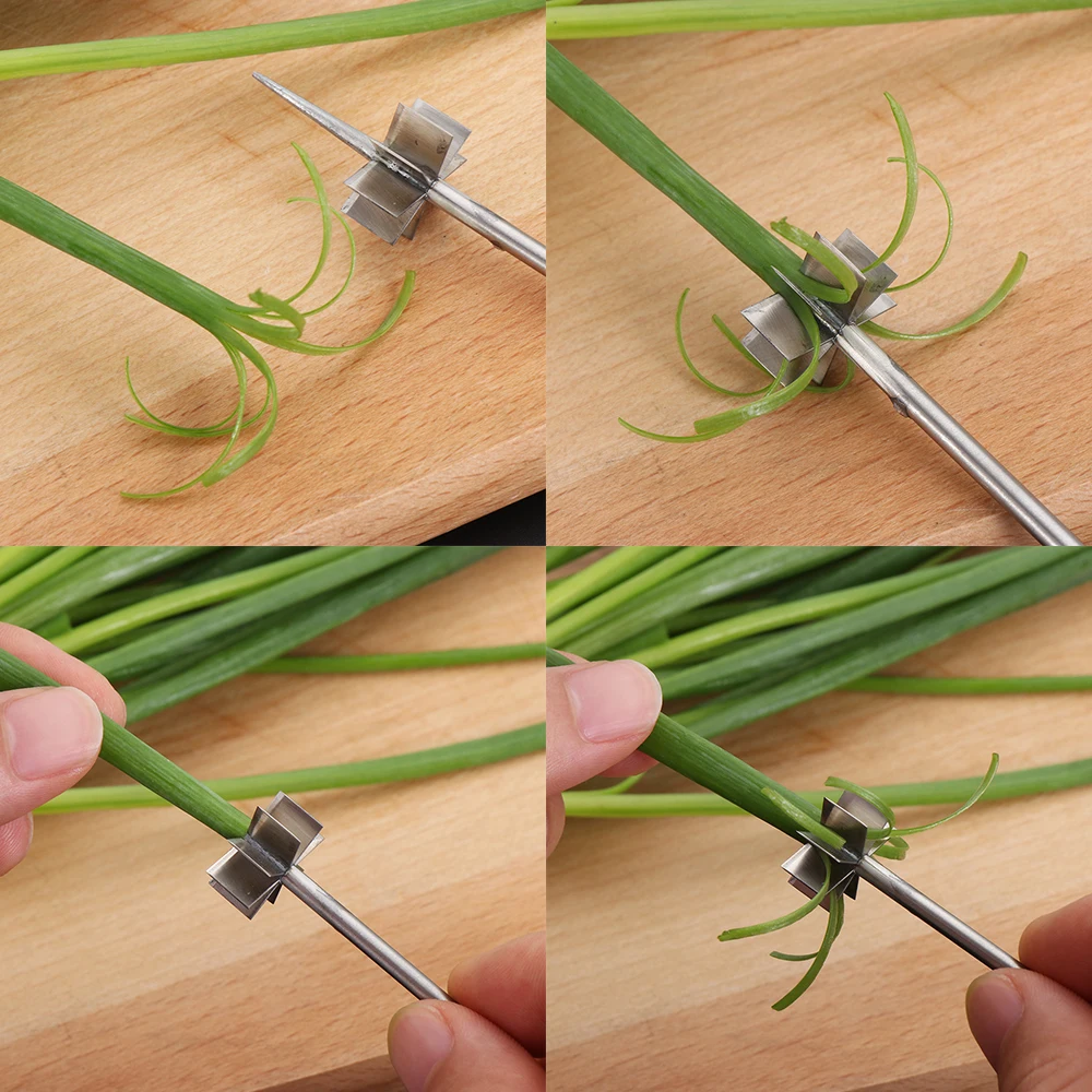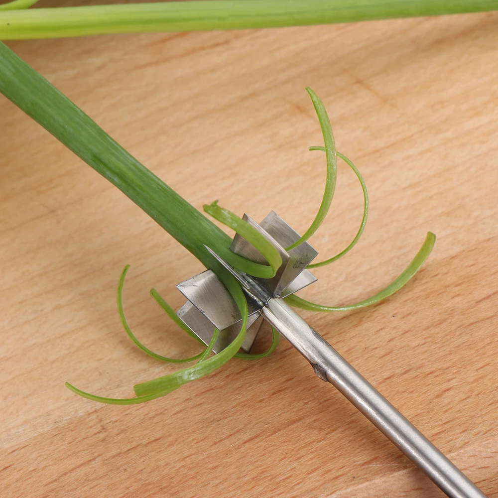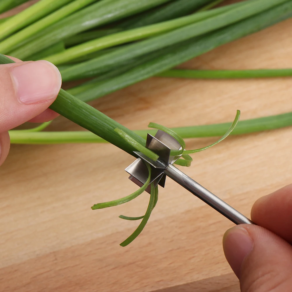 5.Widely UsedThe stainless steel plum blossom onion cutter can easily and consistently shred various vegetable stems, such as onions, chimes, young garlic leaf, spinach, scallion, and more.