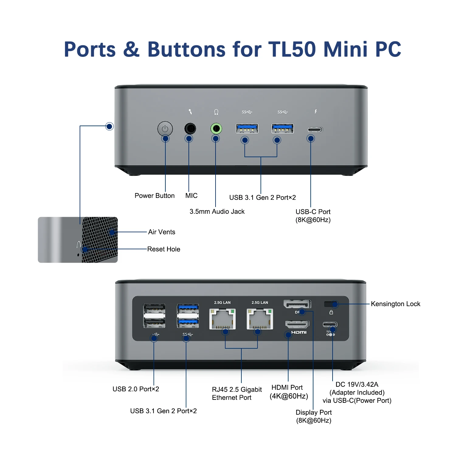 ① HD-MI (4K @ 60Hz) , ② DisplayPort(8K @ 60Hz) , ③ Thunderbolt 4(8K @ 60Hz, спереди)