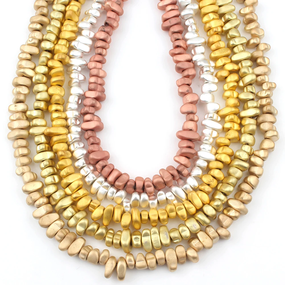 Название: естественный неправильной формы гравия гематит камень Бусины матовые Позолоченные свободные разделительные бусины для самостоятельного изготовления ювелирных изделий браслет