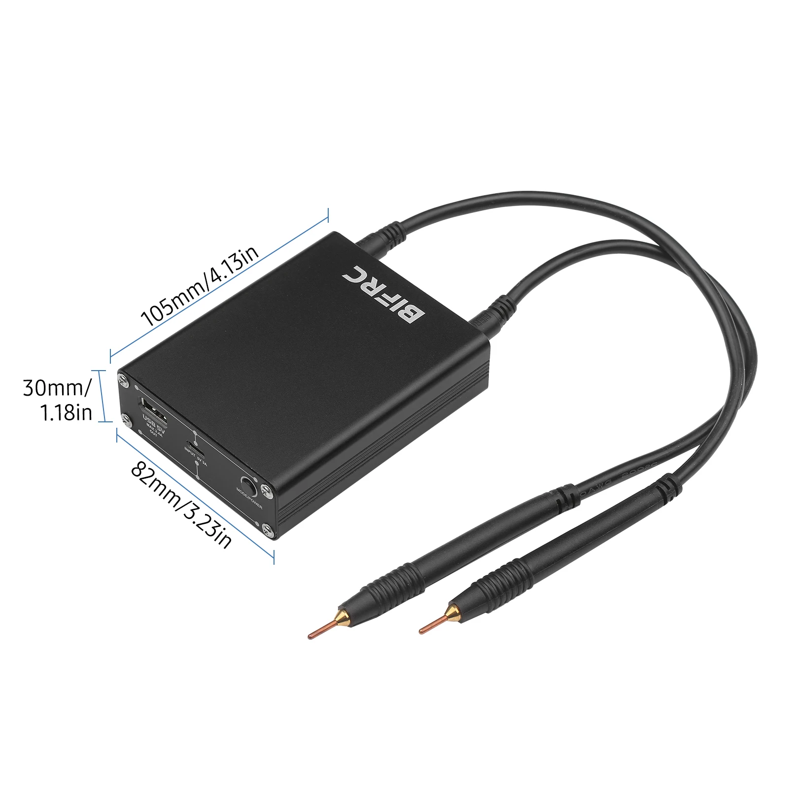 Аксессуары: оснащена парой 14,5 дюйма (370 мм) сплит-тип сварочный электрод, которые разработаны с съемный 2 мм с золотым напылением пайки меди иглы, рулон 2 метров в длину никелевый лист (0,12*8 мм), а также зарядный кабель USB-C.