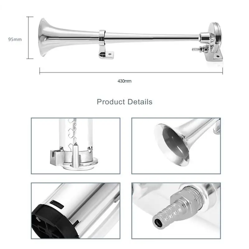 Одиночный гудок изготовлен из высококачественного материала, обеспечивающего максимальную прочность и долговечность при длительном использовании, а также обладает устойчивостью к атмосферным воздействиям. С Полированным Красным компрессором и блестящими хромированными рожками они бросают поразительный вид на любом автомобиле, установленном. Один гудок легко устанавливается. В комплект звукового сигнала входит основное крепление, шланг, надувной двигатель.