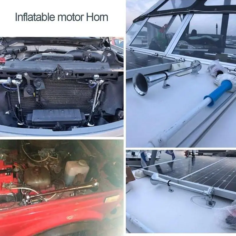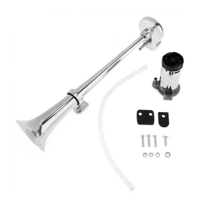 Легко установить. В комплект звукового сигнала входят базовые монтажные детали и шланг, надувной двигатель.