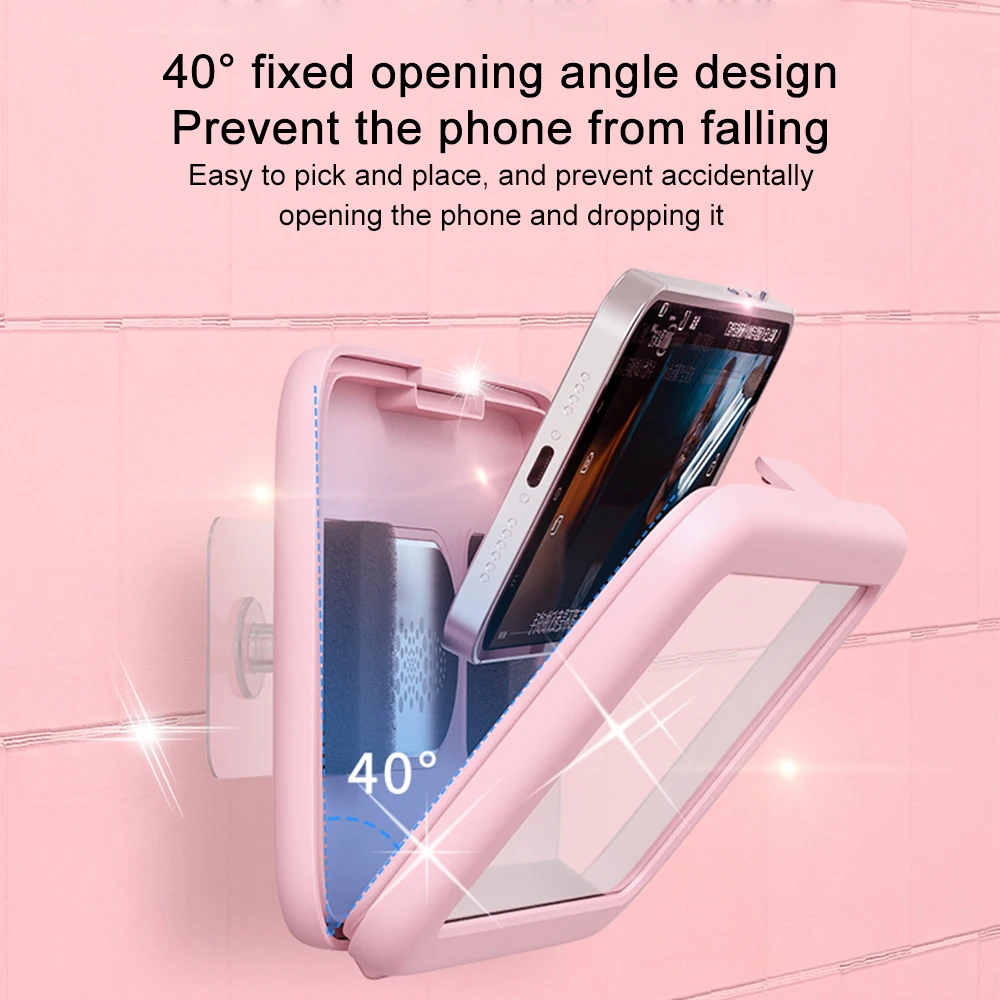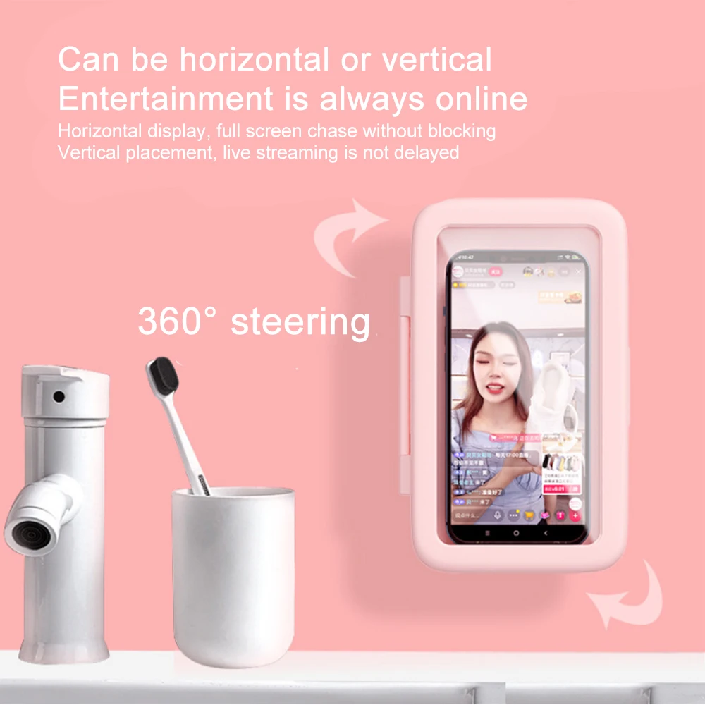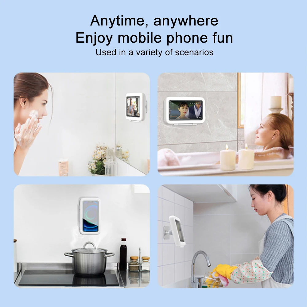Водонепроницаемый чехол для телефона с поворотом на 360 °, высокой четкости Анти-туман сенсорный экран настенный телефон чехол с держателем телефона совместим с мобильные телефоны под 6,9 дюйма для просмотра в вертикальном и горизонтальном положении брызгозащищенное настенный держатель для телефона подходит для душа, ванная комната, кухня, зеркальная поверхность