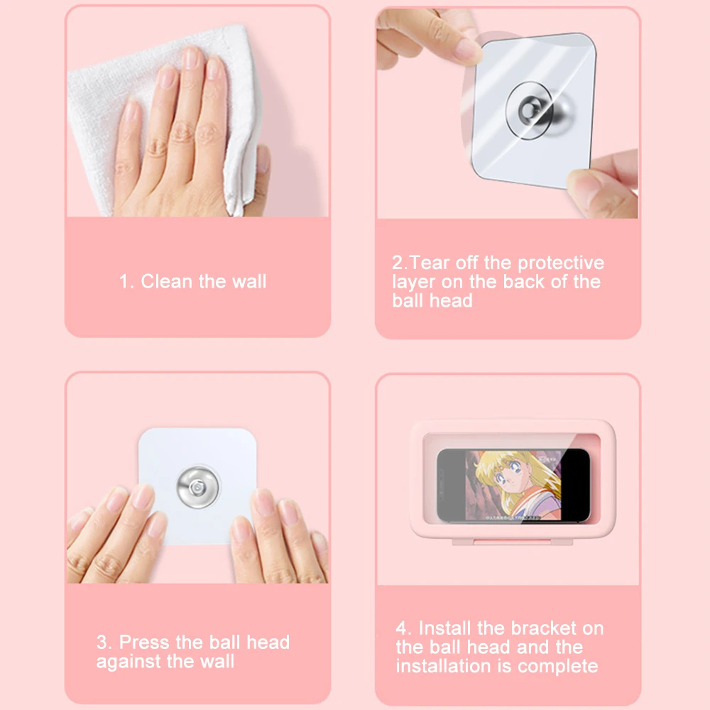 4. [супер удобный, прочный и простой в установке] просто протрите стену и приклейте ее к стене. Сильная адгезия может поддерживать до 4,4 фунтов (около 2 кг), поэтому нет необходимости беспокоиться о падении телефона! Он имеет три клейких кронштейна, поэтому вы можете разместить эти кронштейны в трех различных положениях, таких как стены ванной комнаты, зеркала или кухонные стены. Не перфорированная конструкция не повредит стену, клей влагостойкий, прочный, устойчивый, не легко отвалится и не имеет следов. Подходит для коллажа плитки, стекла, обычной плитки, мрамора, металла и т. Д.