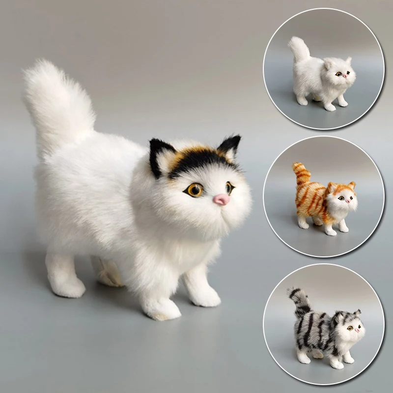 Simulation Realistic Animal Cat Cute Cat Kitten Plush Toy Cat Doll Model Home Car Decoration Ornaments Boys Girls Birthday Gifts
