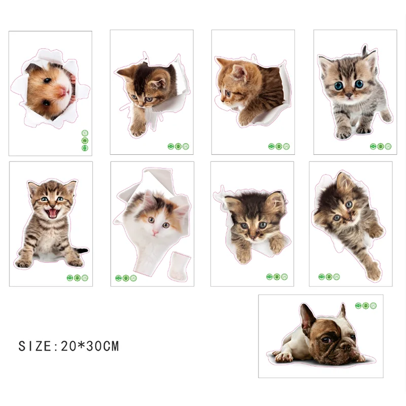 Симпатичный кот собака наклейки на унитаз украшение для дома Забавный мультфильм животное Wc роспись искусство яркий 3D котенок щенок сафари ПВХ Наклейка на стену