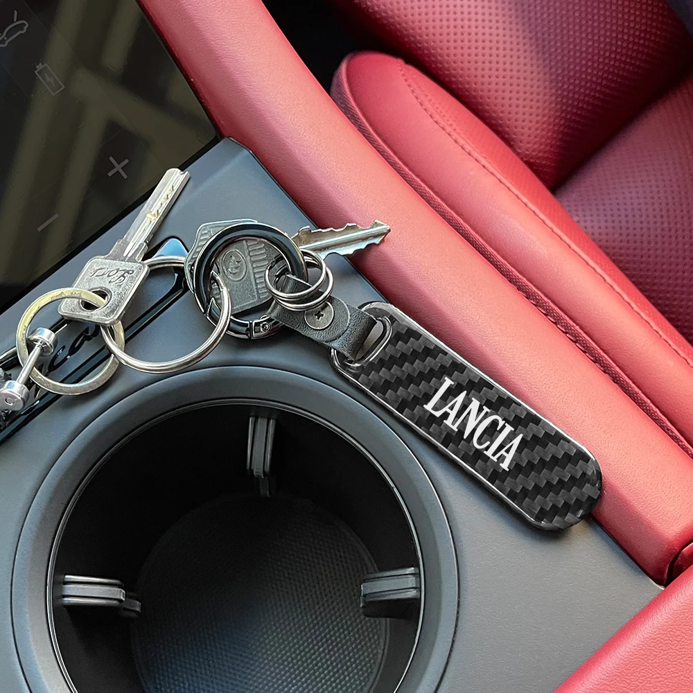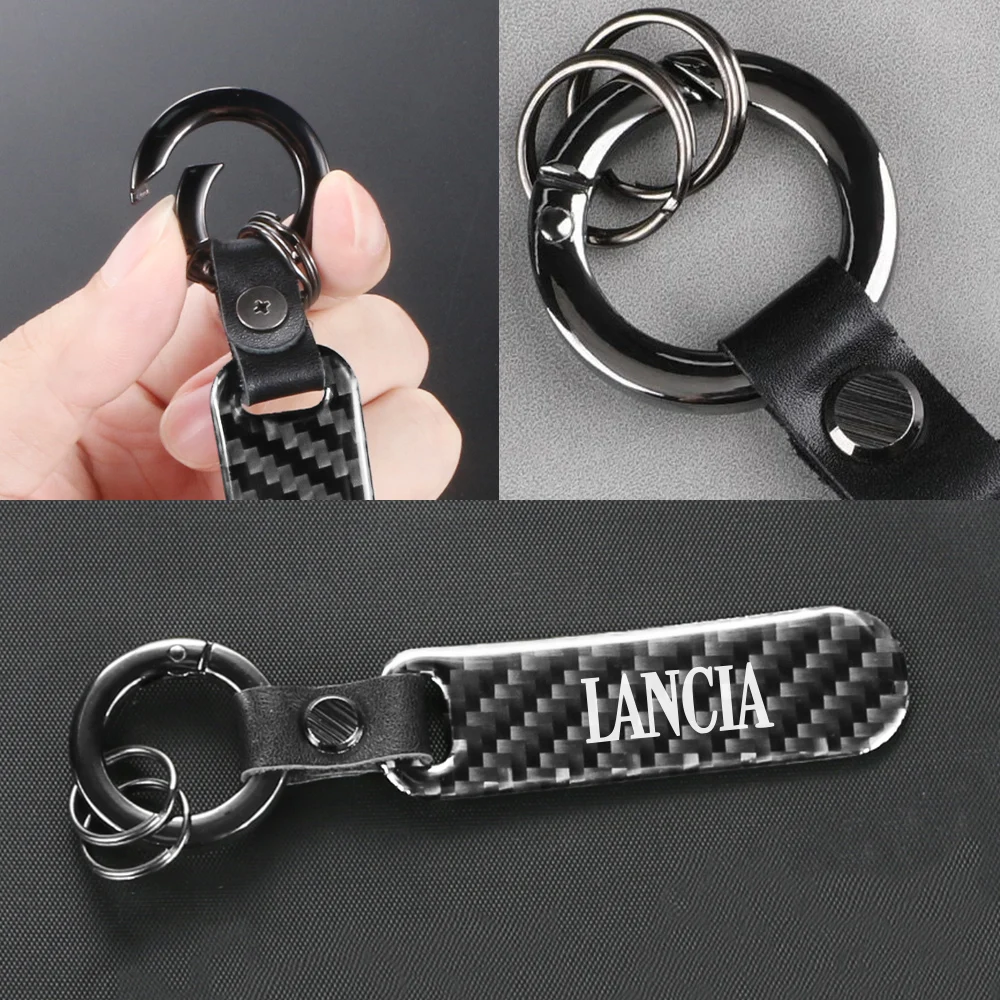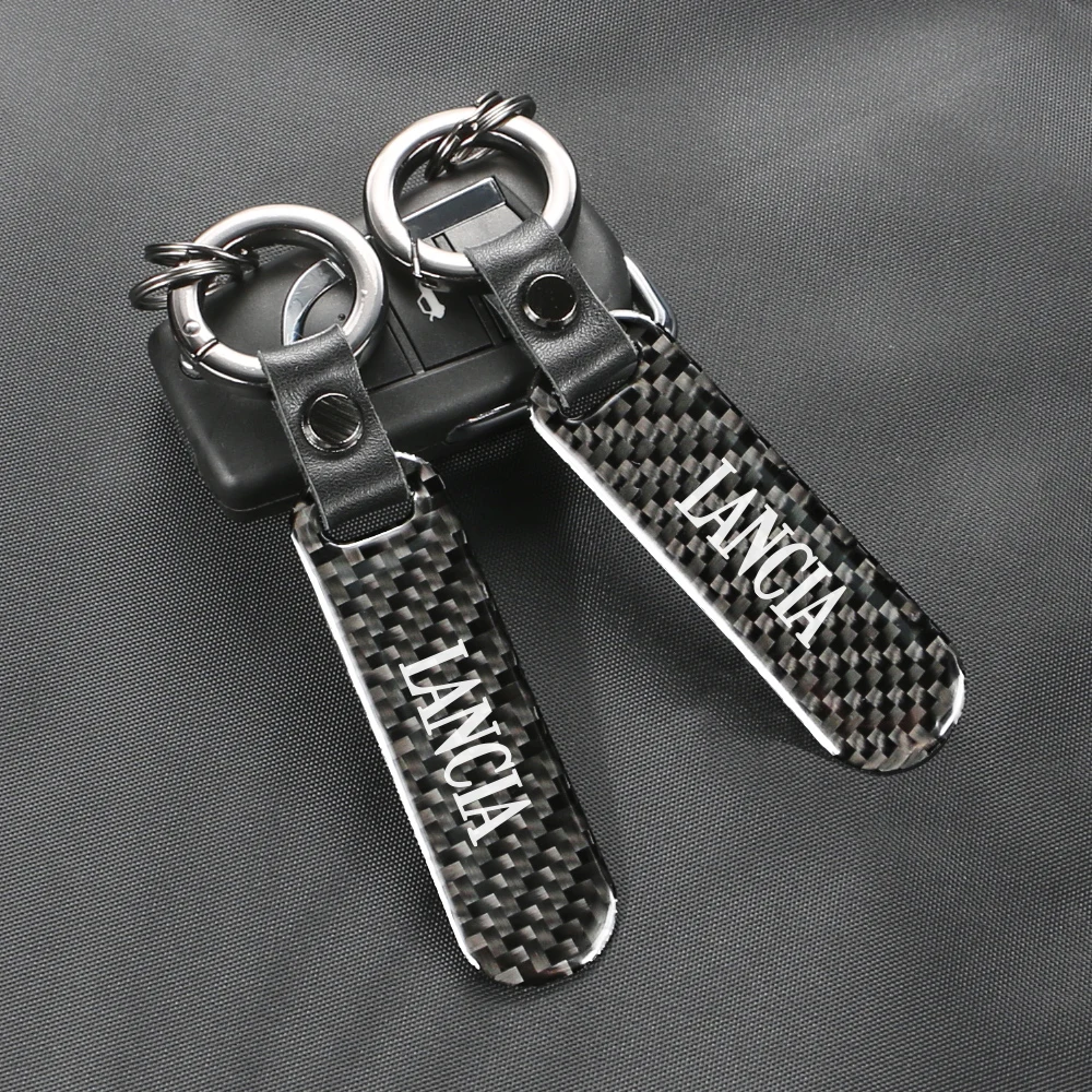 Автомобильный брелок из углеродного волокна с защитой от потери, брелок с кольцом для Lancia Thema Delta Ypsilon Musa Voyager Stratos, стильные аксессуары