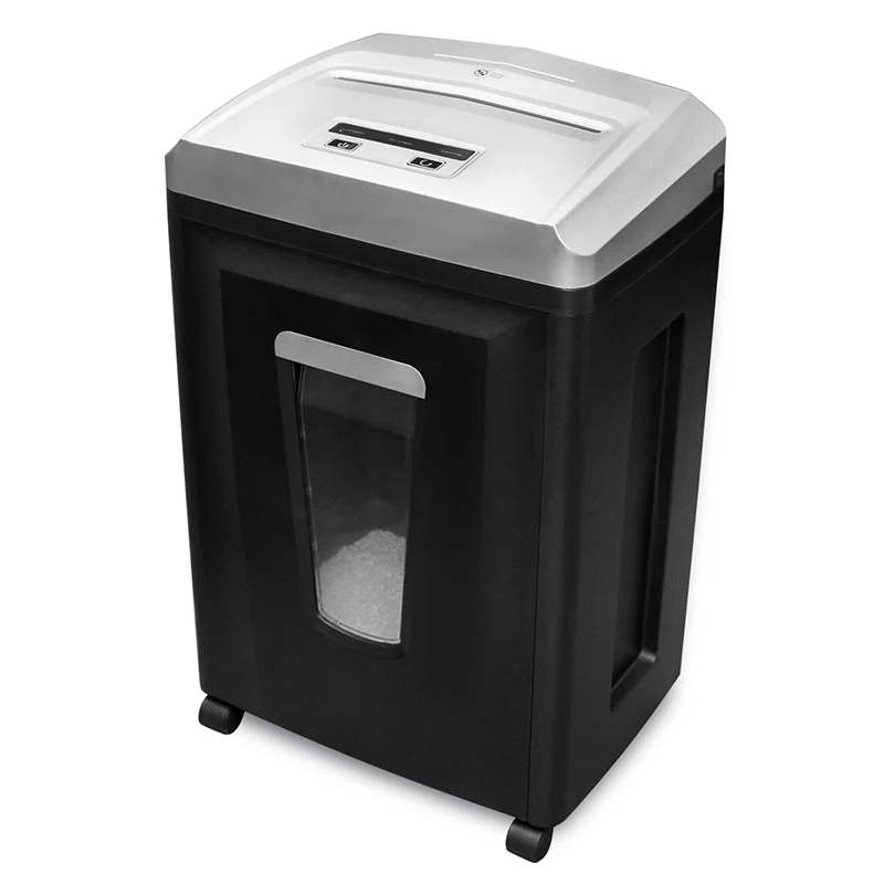 Резка перекрестная. Корзина 23 л. Размер частицы 0,8х2 мм. Уровень секретности (DIN-66399)/(DIN-32757) P-7/6. Ширина загрузки 230 мм. Шум 58 дБ. Скорость резки 43 мм/сек. Мощность 230 Вт. Габариты 360х260х580 мм, 14.4 кг. Уничтожение листов 70г/м7/ 80г/м6.