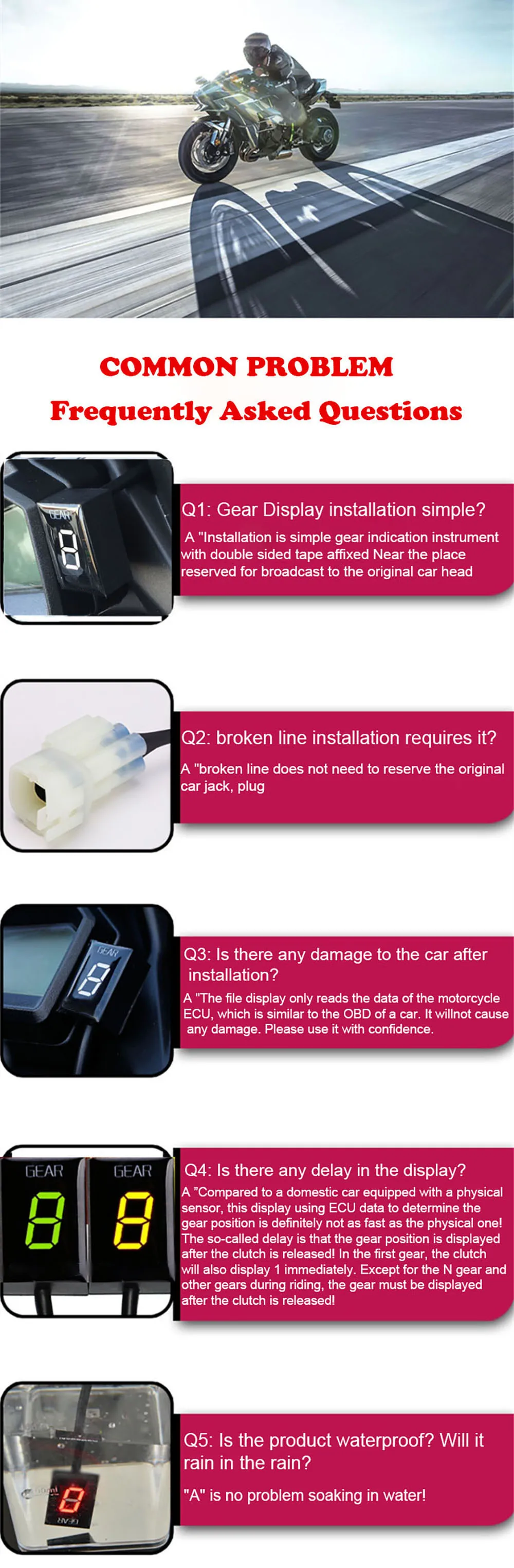 Поздравляем с покупкой индикатора положения шестерни SEPP, этот продукт подойдет всем мотоциклам Kawasaki с впрыском топлива (EFI), которые имеют бортовой диагностический разъем системы. Этот разъем называется KDS (диагностическая система Kawasaki) в руководствах Kawasaki. В отличие от других индикаторов передачи, доступных для вашего велосипеда, этот продукт подключается к диагностическому разъему. Он делает установку очень образцом. Устройство считывает данные непосредственно из ECU, предлагая более быстрые и надежные показания, чем конкурирующие продукты. Дисплей является автоматическим обучением, нет кнопки и нет ограничений на "провод программирования"; Ваш велосипед не оснащен датчиком положения шестерни. Поэтому определение используемой шестерни возможно только при запуске двигателя и выпуске сцепления.
