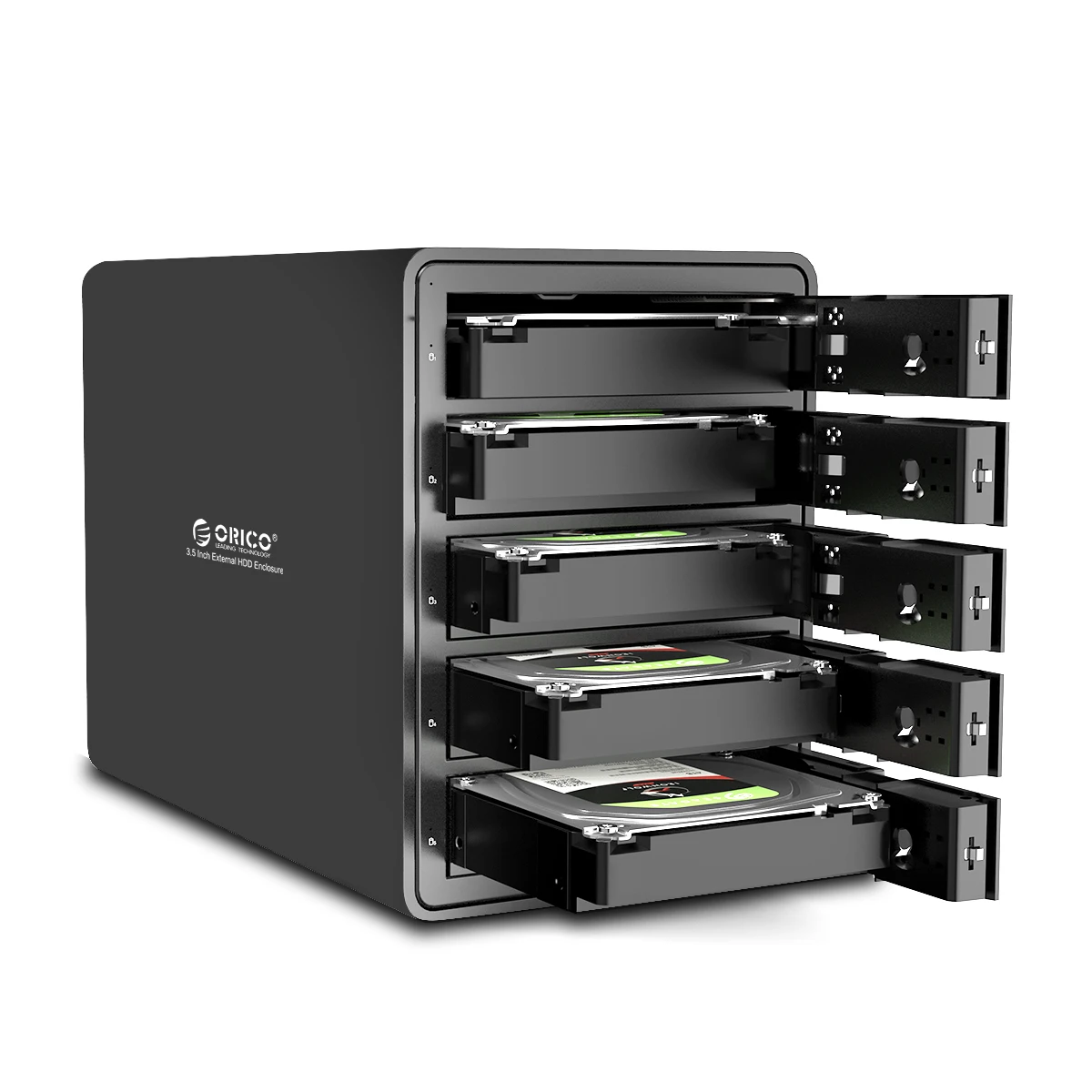Корпус для внешнего жесткого диска 5 Bay, поддержка RAID 0/1/3/5/10/jbod/одиночный эксклюзивный режим RAID, который может удовлетворить различные рабочие требования. И совместимость 3,5 дюймов жесткого диска SATA HDD жёсткий диск, поддерживает до 5x16 ТБ жёсткий диск, Общая вместимость до 80 ТБ.