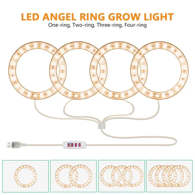 Растительный светильник светодиодный Angel Ring Plant Grow светильник s DC5V USB IP20 водонепроницаемый фитоламп для комнатных растений саженцы цветы для дома, сада