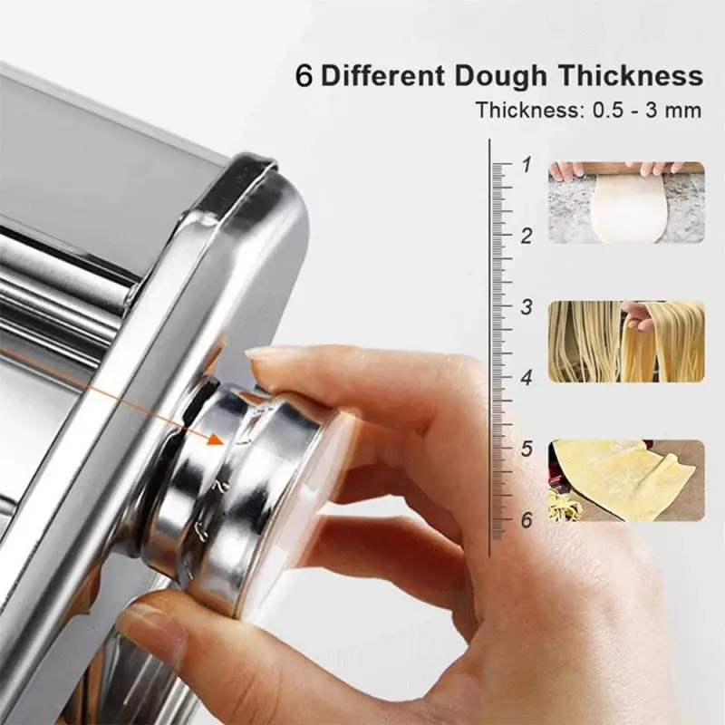 Домашняя лапша быстро превращает тесто в требуемую толщину. Есть 6 Регулируемых уровней для регулировки толщины лапши, что позволяет легко сделать тонкую лапшу, клецки обертки, wonton обертки и т. Д.;