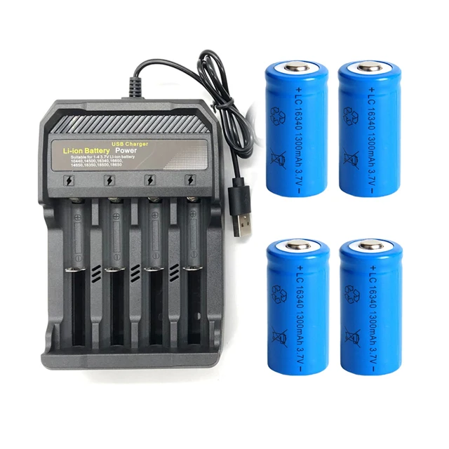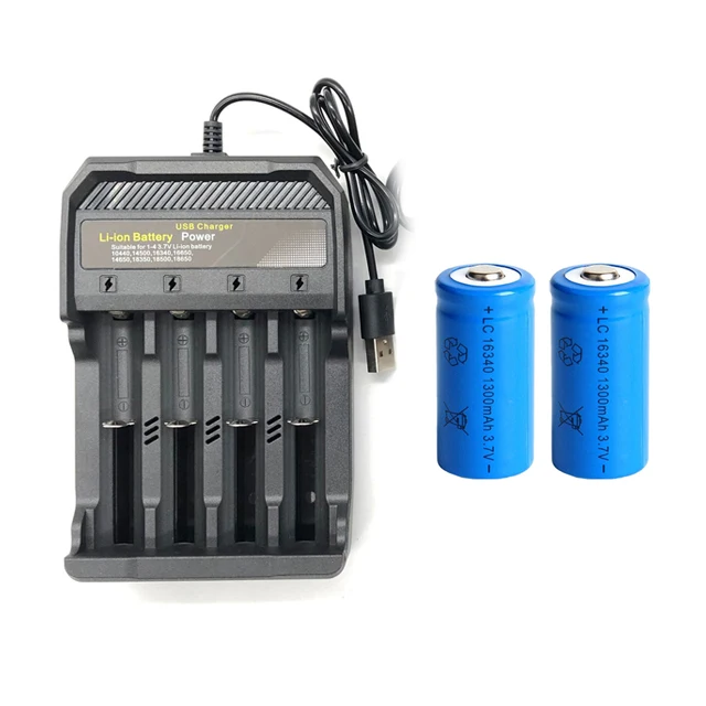 1300mAh 16340 литий-ионная батарея аккумуляторные батареи и USB зарядное устройство батарея для фонарика путешествия настенное зарядное устройство CR123A батарея