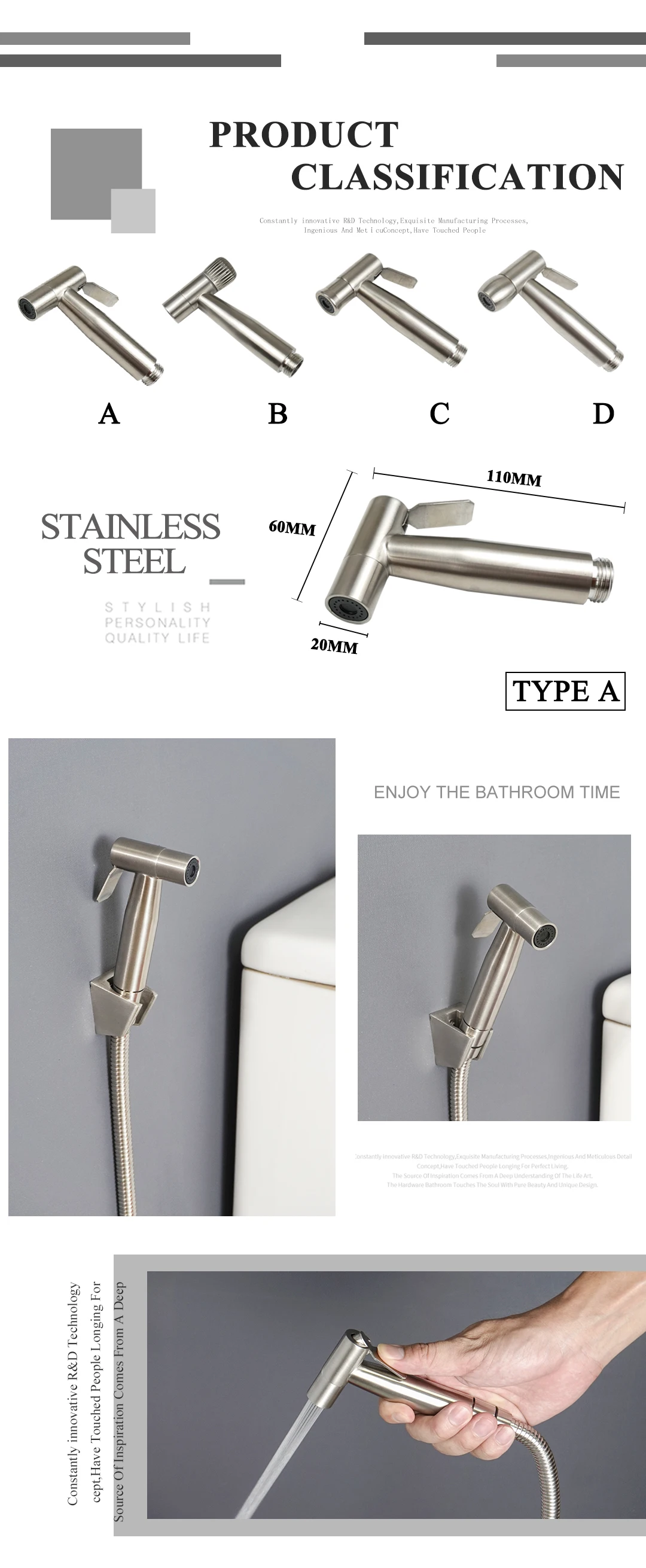 Ручной распылитель для биде из нержавеющей стали, ручной распылитель для биде для ванной комнаты, ручной распылитель для душа, самоочистка